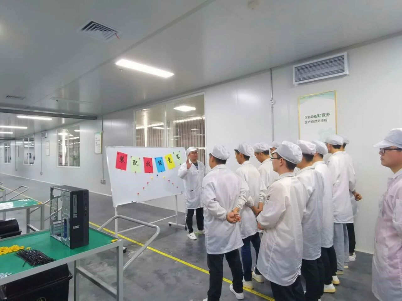 比赛现场,各个参赛选手摩拳擦掌,斗志昂扬。PC车间装配线上,参赛选手自信从容,利用早已熟记在心的装配口诀,组装着Huanghe K680 G1主机真算是得心应手;服务器车间装配线比赛也在如火如荼的进行,虽然Huanghe 2280 V2服务器装配难度高,但是在参赛选手手中可以说是游刃有余,全程无停顿间隙,一气呵成。比赛结果将以装配所用时间和质检人员打分的综合成绩选出一、二、三等奖。